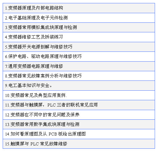 變頻器維修培訓(xùn)結(jié)業(yè)時(shí)間:1個(gè)月