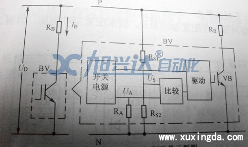 由于功率管VB的驅(qū)動(dòng)電路是低壓電路,只能通過電阻Rs1和Rs2進(jìn)行分壓,按比例取出Ud的一部分,作為采樣電壓,和穩(wěn)定不變的基準(zhǔn)電壓Ua進(jìn)行比較,得到控制VB導(dǎo)通或截止的指令信號(hào)�;鶞�(zhǔn)電壓Ua的大小應(yīng)與直流電壓的上限值Udh成比例。