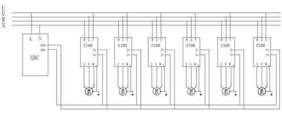 2)一臺變頻器拖幾臺電動機時,則pv≥pd1+pd2+pd3+…,而且pd1=pd2=pd3=…,而且?guī)着_電動機只能同時起動和工作。在基本相同工作環(huán)境和工況條件才可以,這樣比買多臺小功率變頻器時能節(jié)省投資。