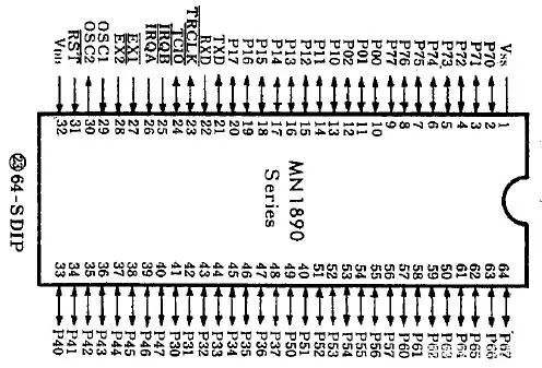 3、CPU芯片-MN18992MDY-6塑封雙列直插,64引腳,用于松下早期DV551、DV561機型: