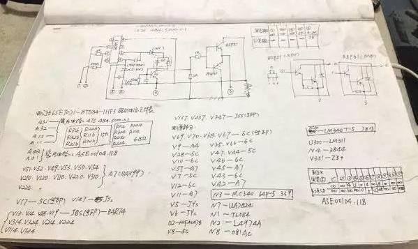 這是主板下來的驅(qū)動(dòng)脈沖緩沖電路,此電路很簡單,用一個(gè)絲印為6C的三極管作為緩沖電路,測和有故障的那一路驅(qū)動(dòng)相對(duì)應(yīng)的三極管6C,發(fā)現(xiàn)其C E極漏電,更換6C,故障排除。由于6C CE極漏電就會(huì)使驅(qū)動(dòng)光耦A(yù)1458初極內(nèi)的發(fā)光二極管提供工作回路,內(nèi)部發(fā)光二極管工作,陶瓷片就進(jìn)入工作狀態(tài)了。