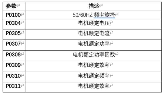 (以上根據(jù)電機(jī)銘牌設(shè)置,注意P0309參數(shù),只有當(dāng)P0100=1時(shí)可見,為0時(shí)內(nèi)部自動(dòng)計(jì)算該值。)