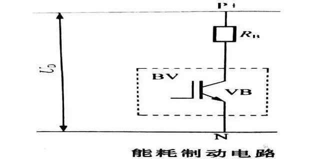 能耗制動(dòng)電路由制動(dòng)電阻RB和制動(dòng)單元BV構(gòu)成,如下圖所示。