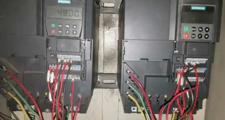 準(zhǔn)備變頻器兩臺(tái)、導(dǎo)線兩根、電源一個(gè)。