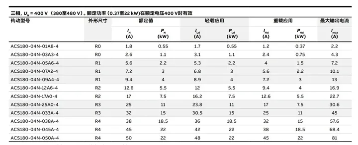 以ABB低壓交流變頻器ACS180系列為例: