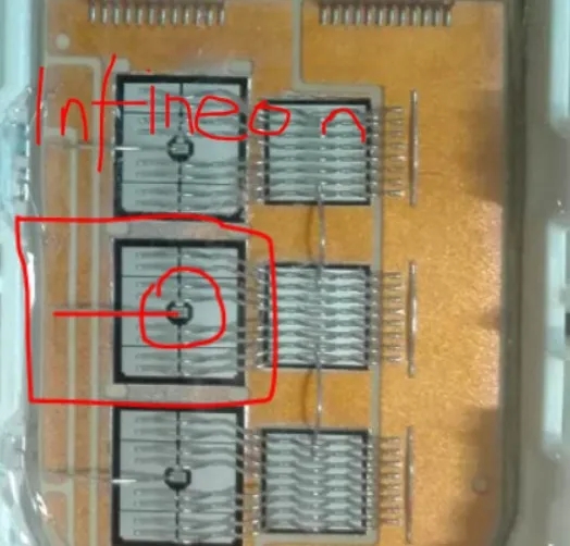 紅框中,是IGBT位置,中間紅圈中那個(gè)黑圈內(nèi)的點(diǎn)是柵極,正面E極(發(fā)射極),背面C極(集電極)
