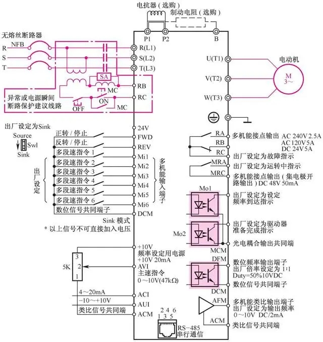 有正反轉(zhuǎn)功能變頻器控制電動機正反轉(zhuǎn)調(diào)速線路