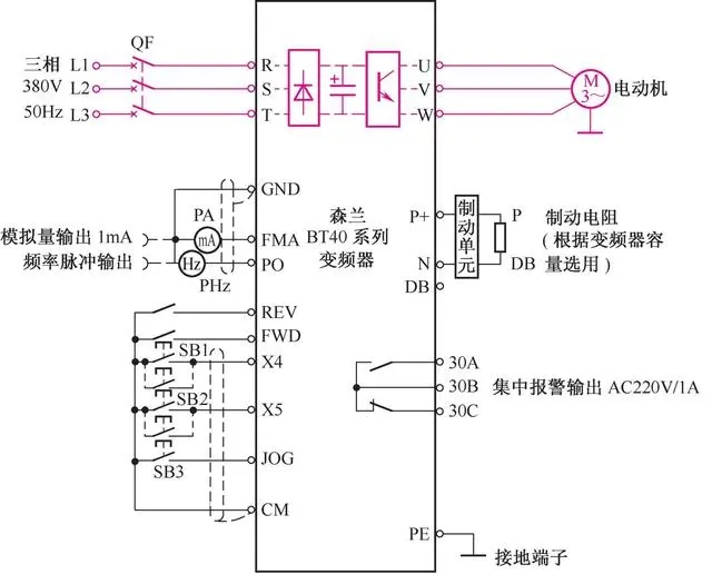 圖4-2 具有三速設(shè)定操作箱的變頻器調(diào)速