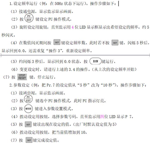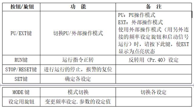 注意:只有當Pr.160“擴展功能顯示選擇”的設(shè)定值設(shè)定為“0”時,變頻器的擴展功能參數(shù)才有效。