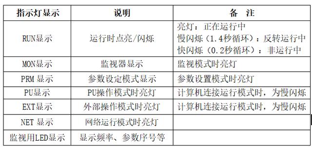 3、操作面板單位表示及運行狀態(tài)表示見下表