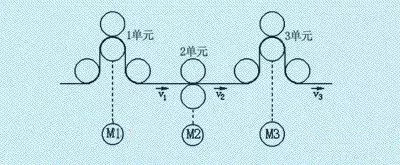顯然,如果后面單元的線速度低于前面,將導(dǎo)致被加工物的堆積;反之,如果后面單元的線速度高于前面,將導(dǎo)致被加工物的撕裂。因此,要求各單元的運(yùn)行速度能夠步調(diào)一致,即實(shí)現(xiàn)同步運(yùn)行。