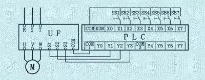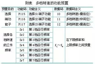 第一步:在輸入控制端子中選擇若干個端子(附表中為3個)作為多檔轉(zhuǎn)速輸入控制端;