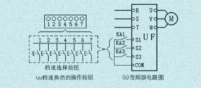 例如,當(dāng)端子S1、S2、S3被預(yù)置為為多檔轉(zhuǎn)速的信號輸入端時。通過繼電器KA1、KA2、KA3的不同組合,可輸入7檔轉(zhuǎn)速的信號,如圖8(a)所示。