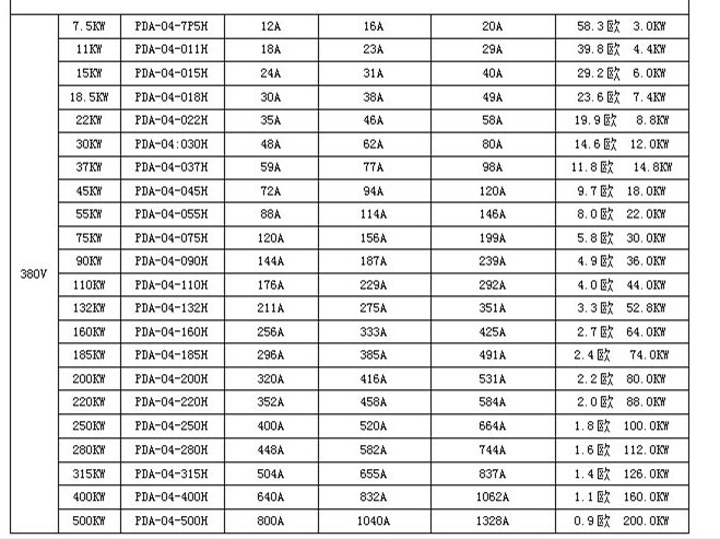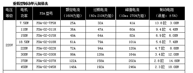 制動電阻是指PDA系列制動單元所允許配接制動電阻值,實據(jù)使用的制動電阻必須根據(jù)制動單元所配設(shè)備的容量和所需制動力矩進行選取。最好選擇IPC標準電阻,保證100%能使用